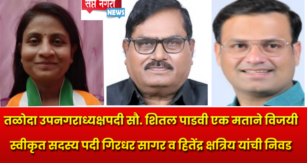 तळोदा नगर परिषद उपनगराध्यक्षपदी राष्ट्रवादीच्या सौ. शीतल लक्ष्मण पाडवी (पटेल) यांचा एक मताने विजयी..स्वीकृत सदस्य पदी राष्ट्रवादीतर्फे गिरधर सागर तर शिवसेनेचे हितेंद्र क्षत्रिय यांची बिनविरोध निवड…