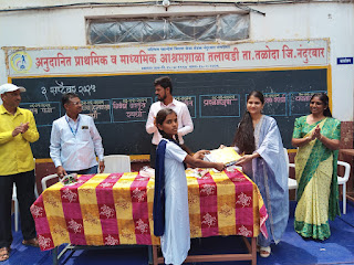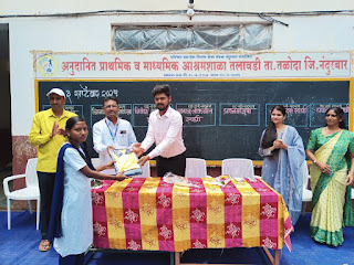 प.खा.भिल्ल सेवा मंडळ नंदुरबार संचलित अनुदानित प्राथमिक व माध्यमिक आश्रम शाळा तलावडी येथे संस्थेचे समन्वयक जयदीप नटावदकर यांच्या हस्ते शालेय गणवेशाचे वाटप करण्यात आले.