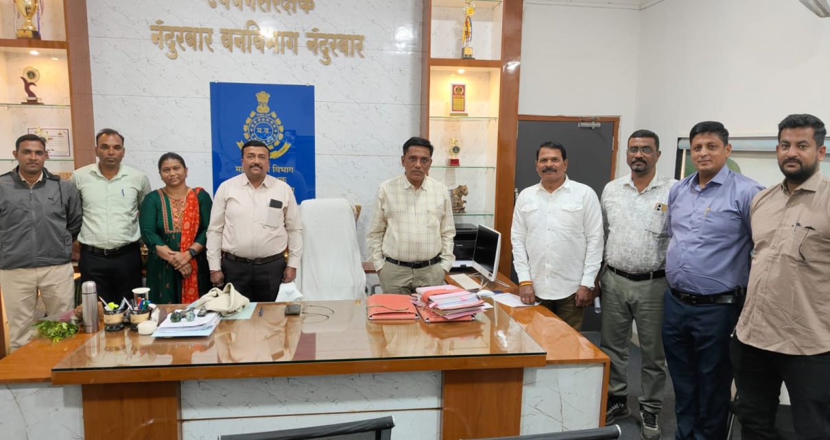 नंदुरबार विभागीय वनरक्षक–वनपाल संघटनेच्या वतीने वनरक्षक व वनपाल यांच्या विविध प्रलंबित अडचणींबाबत चर्चा करण्यासाठी नंदुरबार वनविभाग उपवनसंरक्षक संतोष सस्ते, भा.व.से., तसेच सामाजिक वनीकरण विभागीय वन अधिकारी डॉ. मकरंद गुजर यांची सदिच्छा भेट घेण्यात आली.