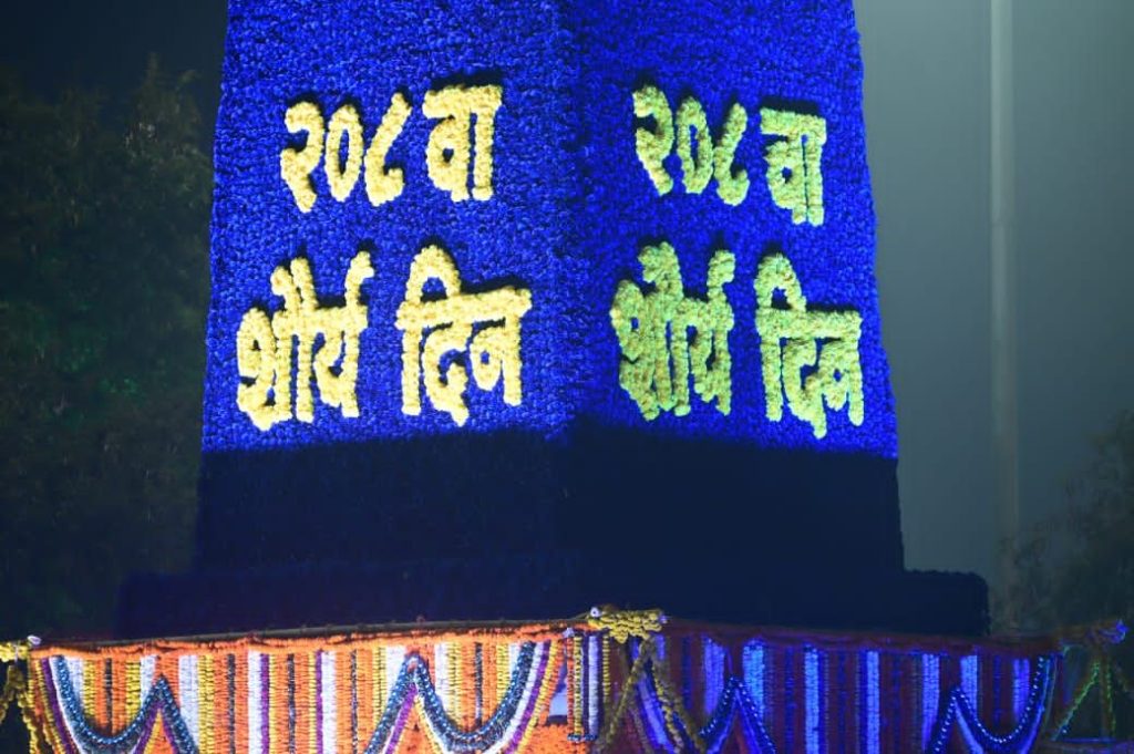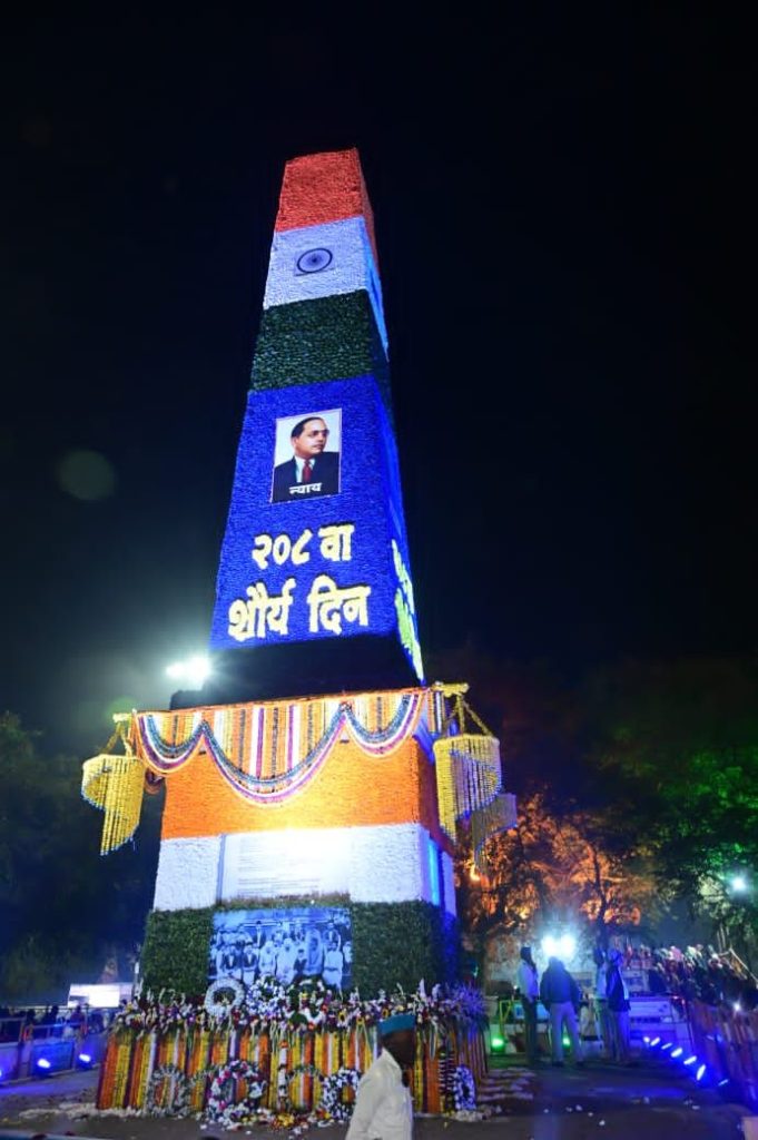 208 व्या शौर्यदिनानिमित्त राज्याचे उपमुख्यमंत्री तथा पुणे जिल्ह्याचे पालकमंत्री अजित पवार यांनी सकाळी पेरणेफाटा येथील ऐतिहासिक विजयस्तंभास अभिवादन केले.