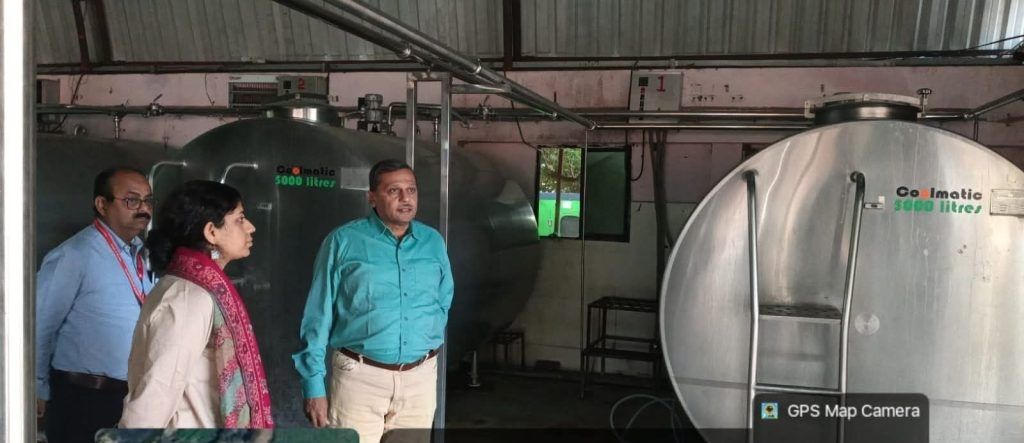 यानंतर मा. जिल्हाधिकारी यांनी मालपूर येथे फीड युनिटला भेट दिली. तसेच मालपूर येथील दूध शीतकरण केंद्राची पाहणी केली. या दुधापासून सध्या कोणते पदार्थ तयार केले जात आहेत, याची माहिती घेतली. शेळीच्या दुधापासून दही, चीज यांसारखे मूल्यवर्धित पदार्थ जागेवरच तयार करून शेळीपालकांना अधिक उत्पन्न मिळवून देता येईल, यावर त्यांनी विशेष भर दिला. तसेच शेळीच्या लेंडीपासून सेंद्रिय खत (फर्टिलायझर) तयार करता येण्याच्या संधींबाबतही चर्चा करण्यात आली. शेळी शेडला भेट देऊन त्या पद्धतीने शेड बांधण्यासाठी येणाऱ्या खर्चाचीही त्यांनी चौकशी केली.