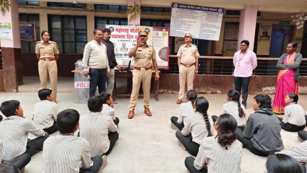 महाराष्ट्र पोलीस स्थापना दिन सप्ताह पोलीस विभागाकडून उत्साहात साजरा करण्यात आला. पोलीस विभाग शांतता, सुव्यवस्था व संरक्षणाचे कार्य करीत असतात. त्यावेळी वेगवेगळ्या विभागाचे कार्य कश्याप्रकारे हाताळण्यात येते. याविषयी नेमसुशिल विद्यामंदिरातील विद्यार्थ्यांना शस्त्रास्त्रांची माहिती पोलिस उपनिरीक्षक स्वप्नाली रोकडे यांनी दिली. वायरलेस कक्ष, कारागृह याविषयी माहिती सांगण्यात आली. उअक्कलकुवा पविभागीय पोलीस अधिकारी सुभाष भोये, तळोदा पोलीस निरीक्षक राजन मोरे, पीएसआय अखिल पठाण, पोलीस हवालदार गोपनीय कक्ष अनिल पाडवी, विजय सोनवणे तसेच मनीलाल पाडवी, लेखनिक पोलीस हवालदार आदी उपस्थित होते.