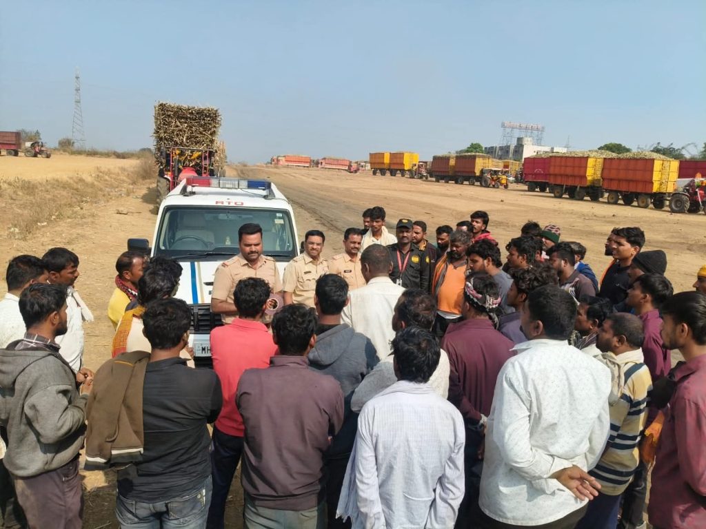 तसेच वायुवेग पथक क्र.४ मधील मोटार वाहन निरीक्षक श्री.सचिन बंग व सहायक मोटार वाहन निरीक्षक श्री.शिवाजी वहीर यांनी ऊस वाहतूक करणाऱ्या वाहनांना रिफ्लेक्टर लावून नागरिकांना रस्ता सुरक्षेबाबत सूचना व मार्गदर्शन केले.वायुवेग पथक क्र. १ व क्र.३ मधील श्री.सुशांत धुमाळे व सहायक मोटार वाहन निरीक्षक श्री. सिद्धेश्वर मस्के यांनीही ऊस वाहतूक वाहनांना रिफ्लेक्टर लावून चालकांना रस्ता सुरक्षेबाबत मार्गदर्शन केले.