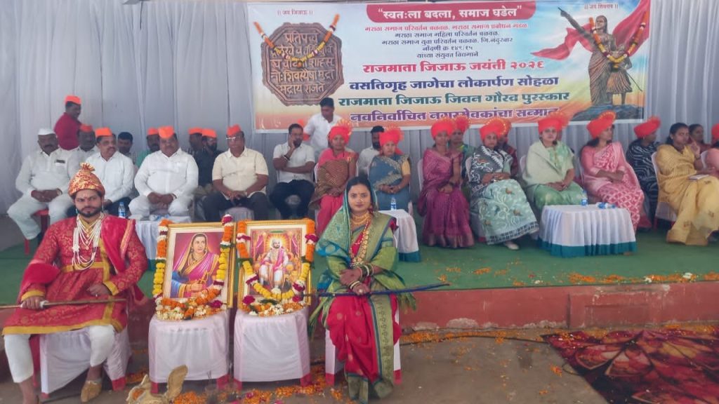 तळोदा येथे मराठा समाजाच्या वतीने आदर्श मातृत्वाचे प्रतिक, छत्रपती शिवाजी महाराजांना घडविणाऱ्या राजमाता जिजाऊ यांची जयंती निमित्त मराठा समाज परिवर्तन चळवळ, मराठा समाज प्रबोधन मंडळ, मराठा समाज महिला परिवर्तन चळवळ, मराठा समाज युवा परिवर्तन चळवळ यांच्या संयुक्त विद्यमाने सांस्कृतिक मिरवणूक काढून शहरातील माळी समाज मंगल कार्यालय येथे विविध उपक्रमातून राजमाता जिजाऊ जयंती मोठ्या उत्साहात साजरा करण्यात आली.