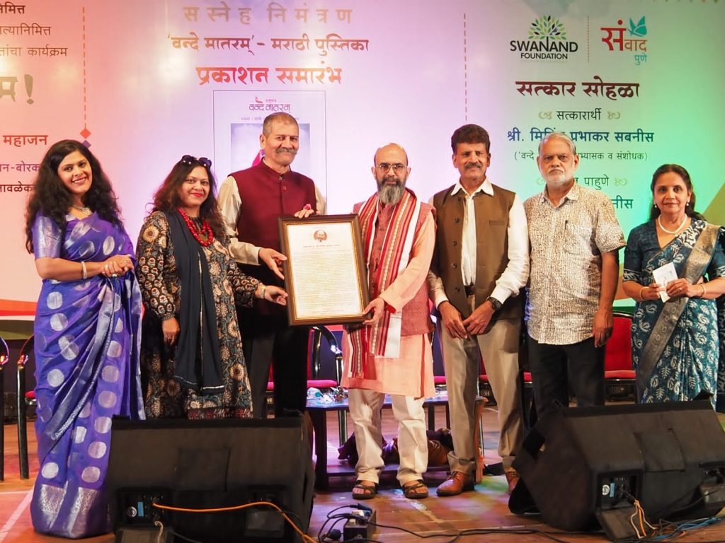 ‘वंदे मातरम्’चे अभ्यासक मिलिंद सबनीस यांचा स्वानंद फाऊंडेशन, संवाद पुणेतर्फे विशेष सन्मान