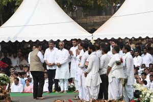 प्रशासनाच्या वतीने राज्याचे मुख्य सचिव राजेश अग्रवाल यांनी श्रद्धांजली अर्पण केली. यावेळी राज्यभरातील खासदार, आमदार, विविध विभागांचे वरिष्ठ अधिकारी, राजकीय, सामाजिक व प्रशासकीय क्षेत्रातील मान्यवरांसह सर्वसामान्य नागरिकांनीही मोठ्या संख्येने उपस्थित राहून आपल्या लाडक्या नेत्याला अखेरचा निरोप दिला.