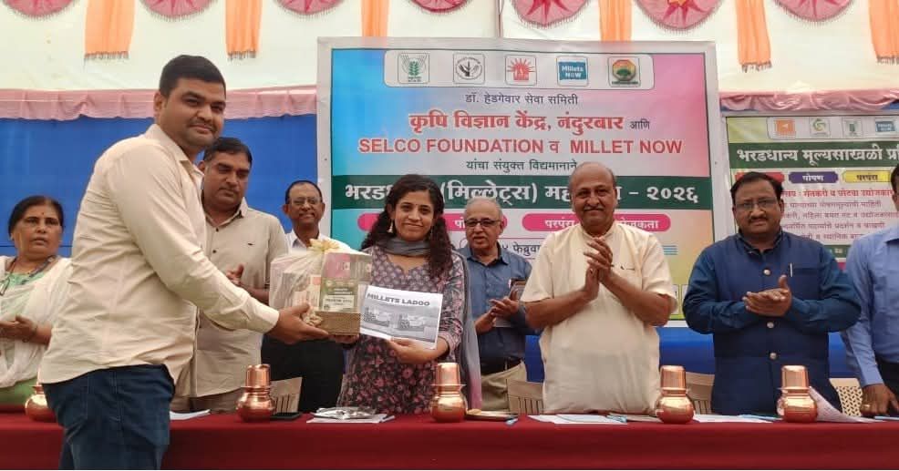 शेतकऱ्यांचे सक्षमीकरण, भरडधान्य पिकांचा प्रचार-प्रसार, प्रक्रिया व मूल्यवर्धनाच्या संधी निर्माण करणे तसेच उत्पादित मालाला बाजारपेठेशी जोडणी मिळवून देण्याच्या उद्देशाने कृषी विज्ञान केंद्र, नंदुरबार यांच्या वतीने सेल्को फाउंडेशन व मिलेट नाऊ यांच्या सहकार्याने मिलेट्स महोत्सव २०२६ यशस्वीरीत्या पार पडला.