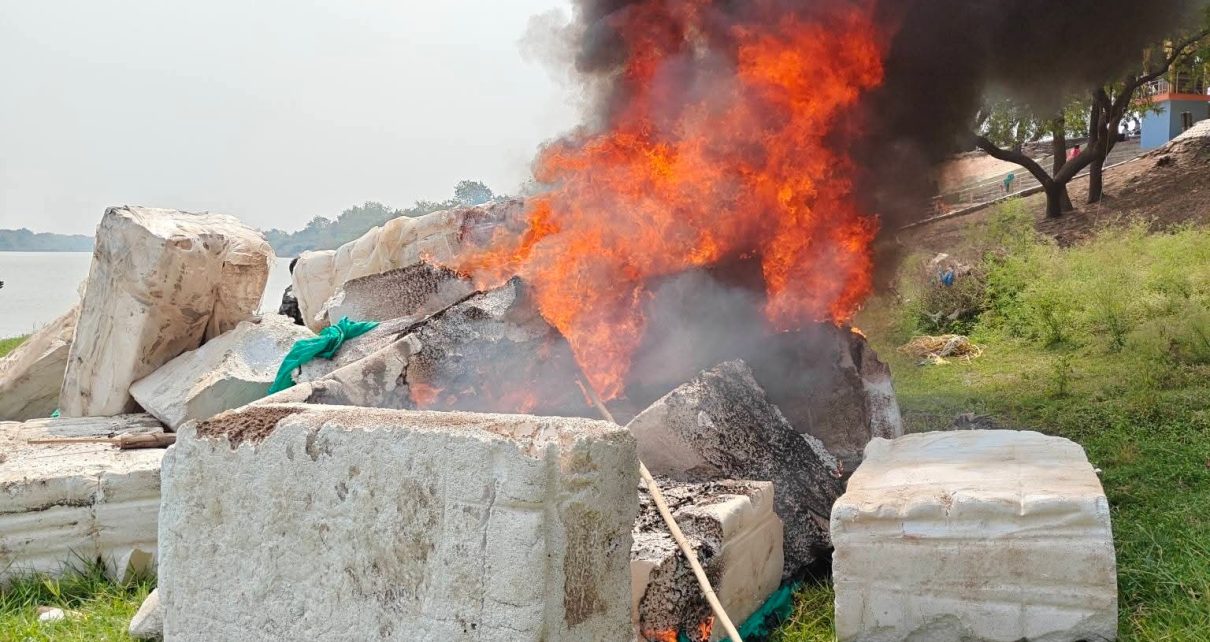 मौजे धसाडी येथे चार तराफे जाळून नष्ट