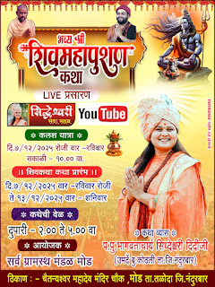 या शिव महापुराण कथेचे निरूपण उमर्दे बु. कोठली ता.जि. नंदुरबार येथील भागवताचार्य सिद्धेश्वरीजी दिदी यांच्या सुश्राव्य वाणीतून होत आहे. दरम्यान  रविवार दि.७ डिसेंबर रोजी सकाळी १० वाजता गावातून वाजत गाजत कलश यात्रा काढण्यात येणार आहे. तर दुपारी २ वाजेपासून कथेला प्रारंभ होत आहे.या शिवमहापुराण कथेचा तालुक्यातील तसेच पंचक्रोशीतील जास्तीत जास्त शिवभक्तांनी तसेच भाविकांनी लाभघ्यावा, असे आवाहन मोड येथील ग्रामस्थ मंडळाच्या वतीने करण्यात आले आहे
